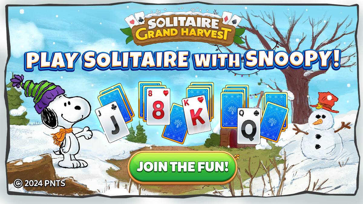 HERZLIYA, Israel, Dec. 29, 2024 /PRNewswire/ — This New Year, Solitaire Grand Harvest is bringing joy, nostalgia, and a bit of winter magic with everyone’s favorite beagle, Snoopy,! Starting December 29, players can experience Snoopy, Woodstock, and the Peanuts gang in a special month-long event that’s bound to bring back cherished memories while adding a little sparkle to your solitaire game.